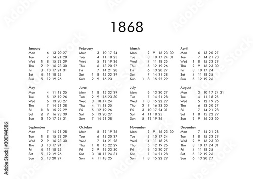Calendar of year 1868
