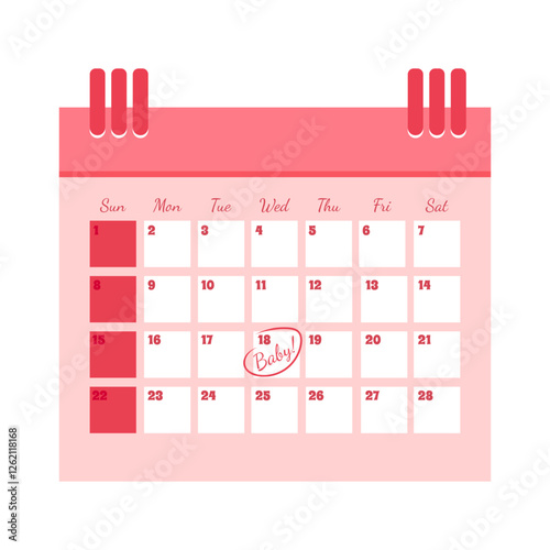 Calendar with circled date. Pregnancy concept. Vector illustration.