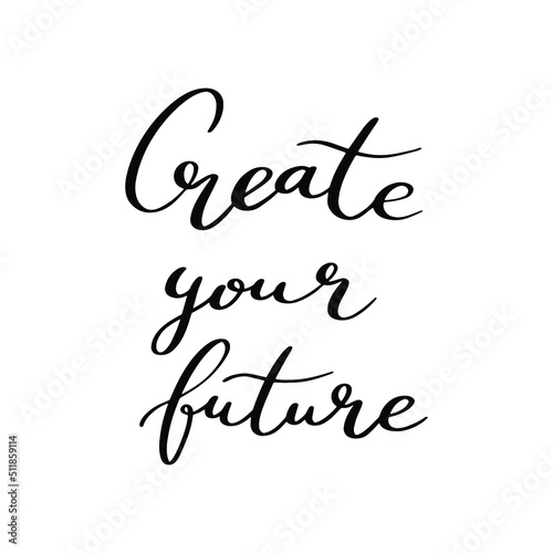 Calligraphic black text for lettering postcard. Motivation and inspiration quotes. Typography and calligraphy poster. Hand drawn vector illustration. Create your future