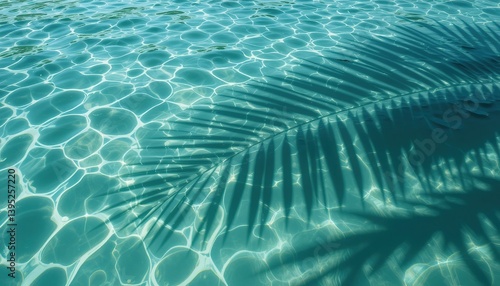 Calm and travel background, tropical relaxation. Tranquil water surface with palm leaf shadows creating abstract patterns on a sunny day.