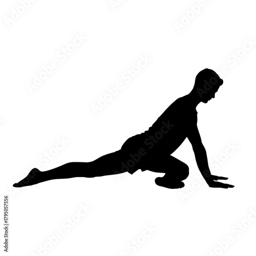 Calm Man Silhouette Performing Half Pigeon Pose Eka Pada Rajakapotasana White Background