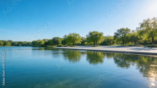 Calm Park Lake with Tree Reflections
