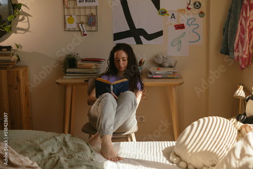 Calm teen reading book in own room