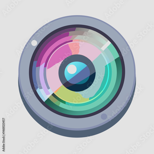 Camera lens icon on a white background, symbolizing photography and visual media.