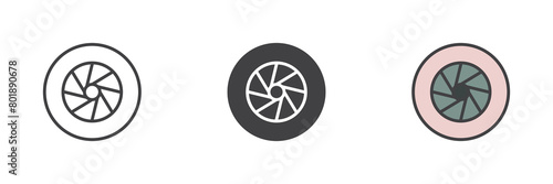 Camera shutter different style icon set