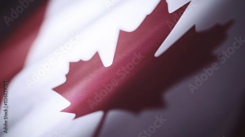 Canada flag closeup emphasizing red maple leaf on white background