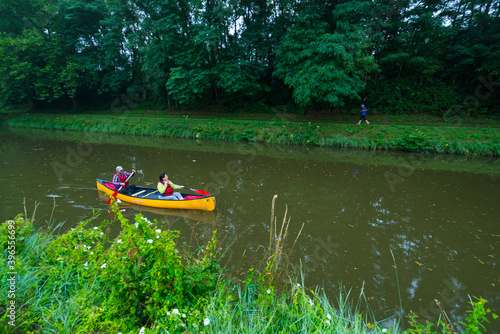 Canadian canoe activity, Loire River Canal, Chécy Village, Loiret Department, The Loire Valley, France, Europe