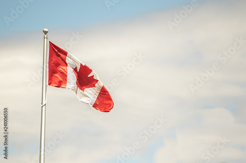 canadian flag in front of blue sky