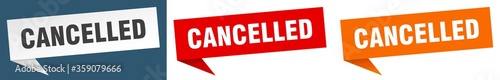 cancelled banner. cancelled speech bubble label set. cancelled sign