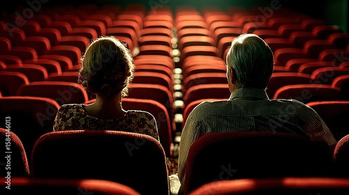 Candid Romantic Moment: Couple Enjoying a Movie Night in a Cozy Theater with Dim Lighting