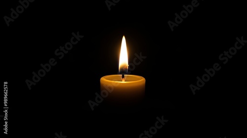 Candlelight fire glowing softly in low light, creating a warm and inviting atmosphere against a dark black background, perfect for evoking feelings of tranquility and peace