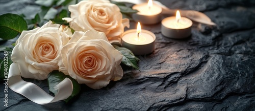 Candles and Roses on Dark Stone