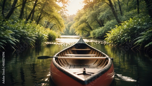 Canoe on a River in a Forest.