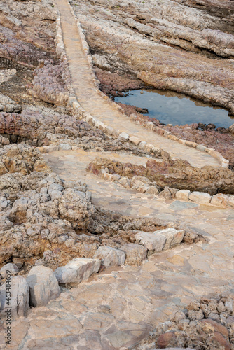 Cap d'Antibes hiking trail. Stone path at the seaside.