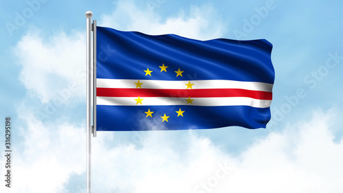 Cape Verde Flag Waving with Clouds Sky Background