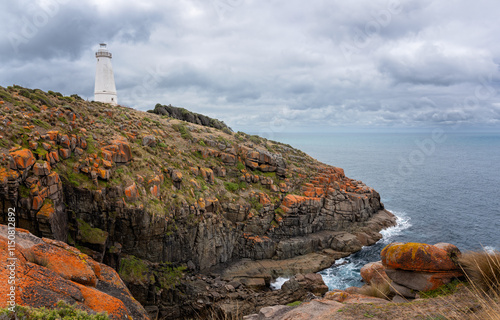 Cape Willoughby lighthouse, pano panorama, sea cliffs, Kangaroo Island, South Australia, historic maritime landmark, travel tourist attraction destination