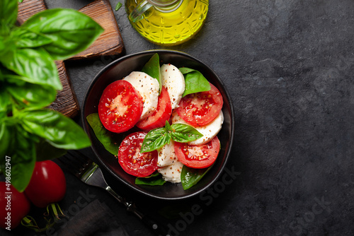 Caprese salad with fresh tomatoes, garden basil and mozzarella cheese
