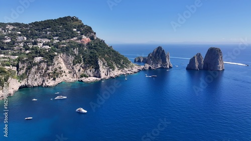 Capri Skyline In Naples Campania Italy. Breathtaking Aerial View Of A Lush Tropical Coastline Scenery. Deserted Skyline Heaven Amazing. Heaven Waterfront Shore. Naples Campania.