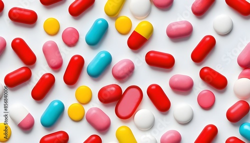Capsules and tablets of various colors lay on the floor.