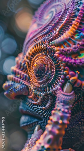 Captivating Cosmic Enigma:Gelatinous Extraterrestrial Creature with Hypnotic Refractive Patterns in Vibrant Neon Palette