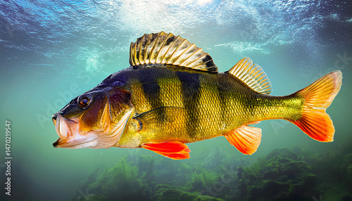Captivating encounter with a vibrant fatty perch gliding through clear waters
