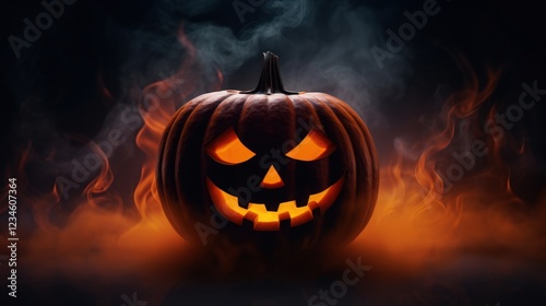 Captivating Halloween Pumpkin with Smoke Effect on Dark Background, Perfect for Spooky Seasonal Decor or Festive Celebrations