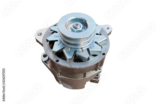 Car alternator isolated on white. Clipping path included.