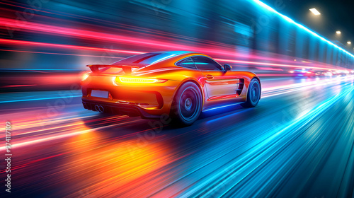 Car at high speed riding in illuminated road