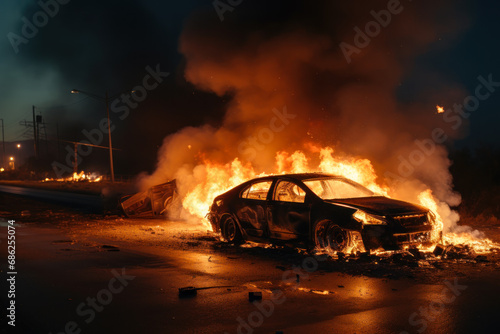 car burning on the road generative ai