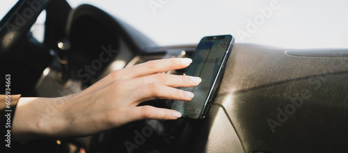 car driver touch smartphone using navigator