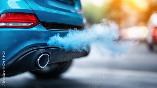 Car Emitting Exhaust in Urban Traffic Environment
