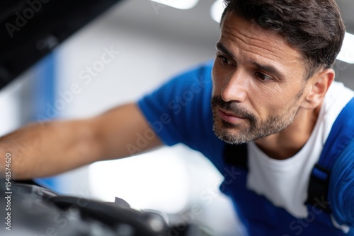 Car mechanic checking under the hood