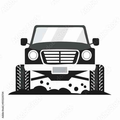 Car off road 4x4 black and white image. Off road car with mud illustration isolated on white background.
