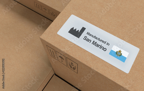 Card Board Carton Boxes with San Marino Flag, Manufactured in San Marino Label - 3D Render