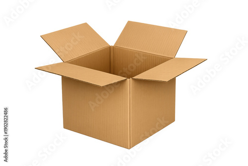 Cardboard box open, empty delivery shipping moving container, brown packaging with corrugated texture