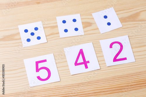 Cards with numbers and dots. The study of numbers and mathematics