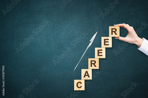 Career. The inscription on the wooden blocks. Copy space. Dark background. Success.