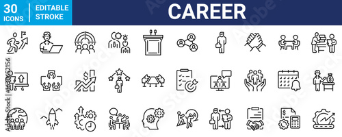 Career web line icons set with Success, Growth, Work, Goals, Motivation, Achievements. Editable Stroke