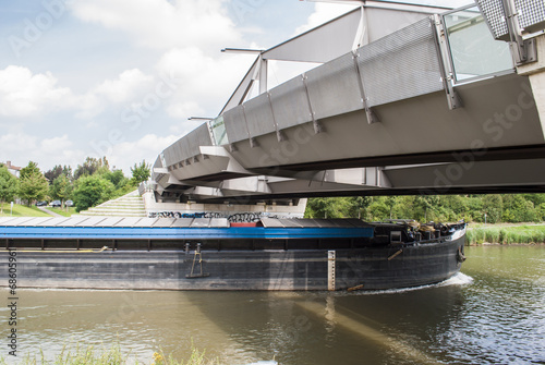 Cargo ship under the bridge