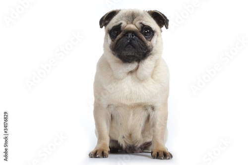 carlin assis de face sur fond blanc