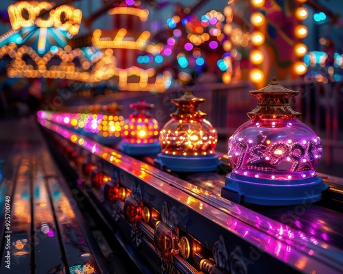 Carnival excitement with bright lights, rides, and joyous faces, creating a lively and festive atmosphere, Pop Art, Neon, Vibrant
