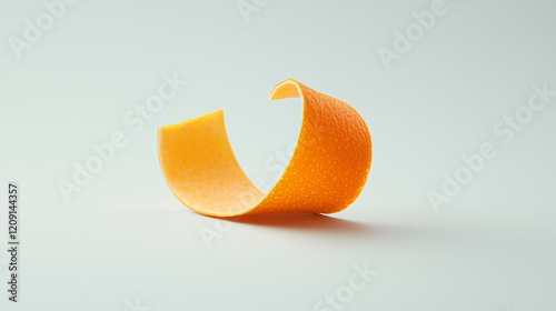 Carrot Peel Curl: A vibrant orange carrot peel curls elegantly, creating a dynamic and visually appealing abstract shape against a light background.