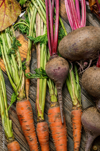 Carrots and beets with their stems