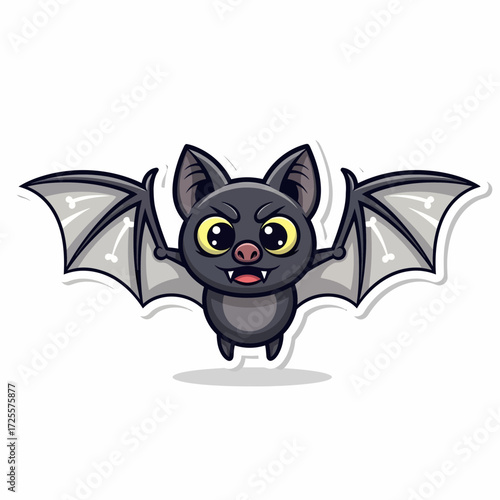 Cartoon Bat with Bone Wing Veins and Yellow Eyes Isolated Sticker Style.