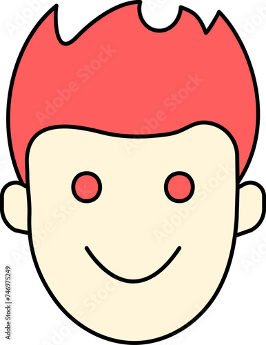 Cartoon Boy Face Icon In Yellow And Red Color.