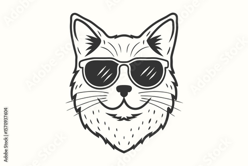 Cartoon cat head with sunglasses reveals a unique outlined pattern on a white background