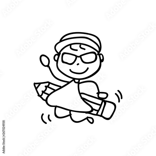 Cartoon character happy girl people happiness hand drawing illustration