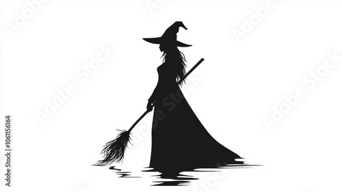 Cartoon character of witch with a broom. Halloween decoration elements.
