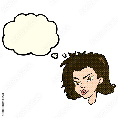 cartoon female face with thought bubble