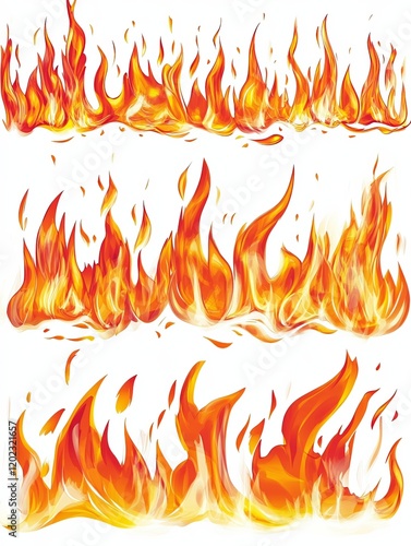Cartoon Fire Flames with Red, Orange, and Yellow Edges on White Background